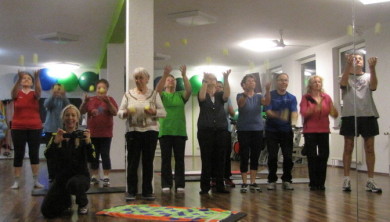 Mit Spaß und flotter Musik werden Übungen zur Verbesserung des Herz-Kreislauf-Systems und zur Stärkung der gesamten Körpermuskulatur kombiniert.